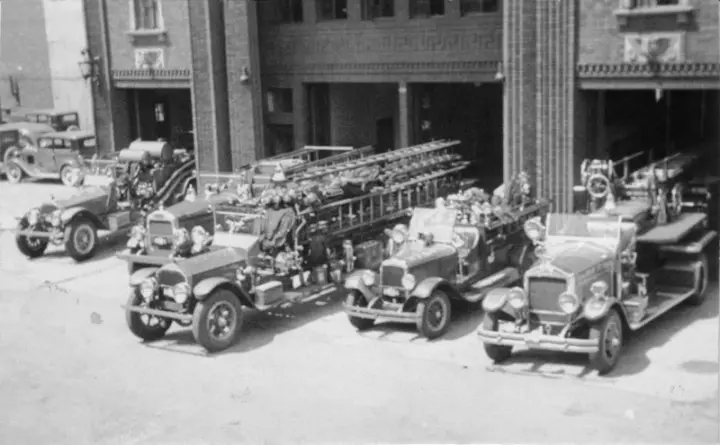 The horse-drawn combination hose and chemical wagon The horse-drawn combination hose and chemical wagon W.E. Seagrave Motor Combination like the one used in 1911 test run...